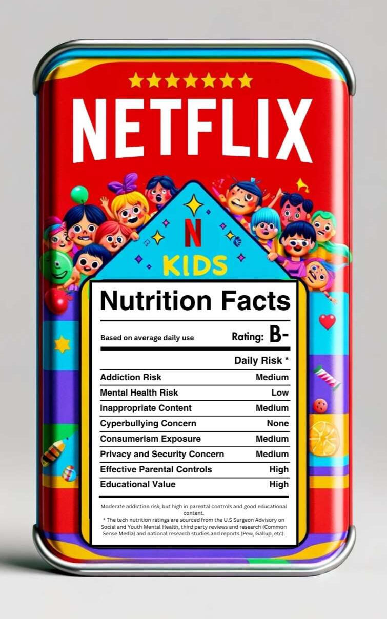 The Tech Nutrition® ratings provided for platforms like Netflix, Snapchat, Minecraft, Fortnite, YouTube, Twitch, Discord, and Instagram are sourced from the following:(1) Corporations' Own Websites and Announcements:Official statements and user guidelines from the platforms themselves often provide information about features, privacy policies, and user safety measures.